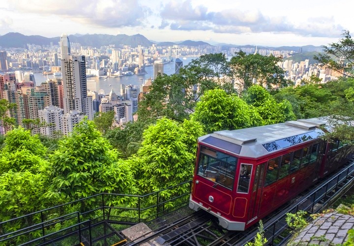 The Peak Tram is a funicular railway in Hong Kong, which carries both tourists and residents to the upper levels of Hong Kong Island. Running from Garden Road Admiralty to Victoria Peak via the Mid-Levels, it provides the most direct route and offers good views over the harbor and skyscrapers of Hong Kong. Operated since 1888, it was the first funicular railway in Asia.